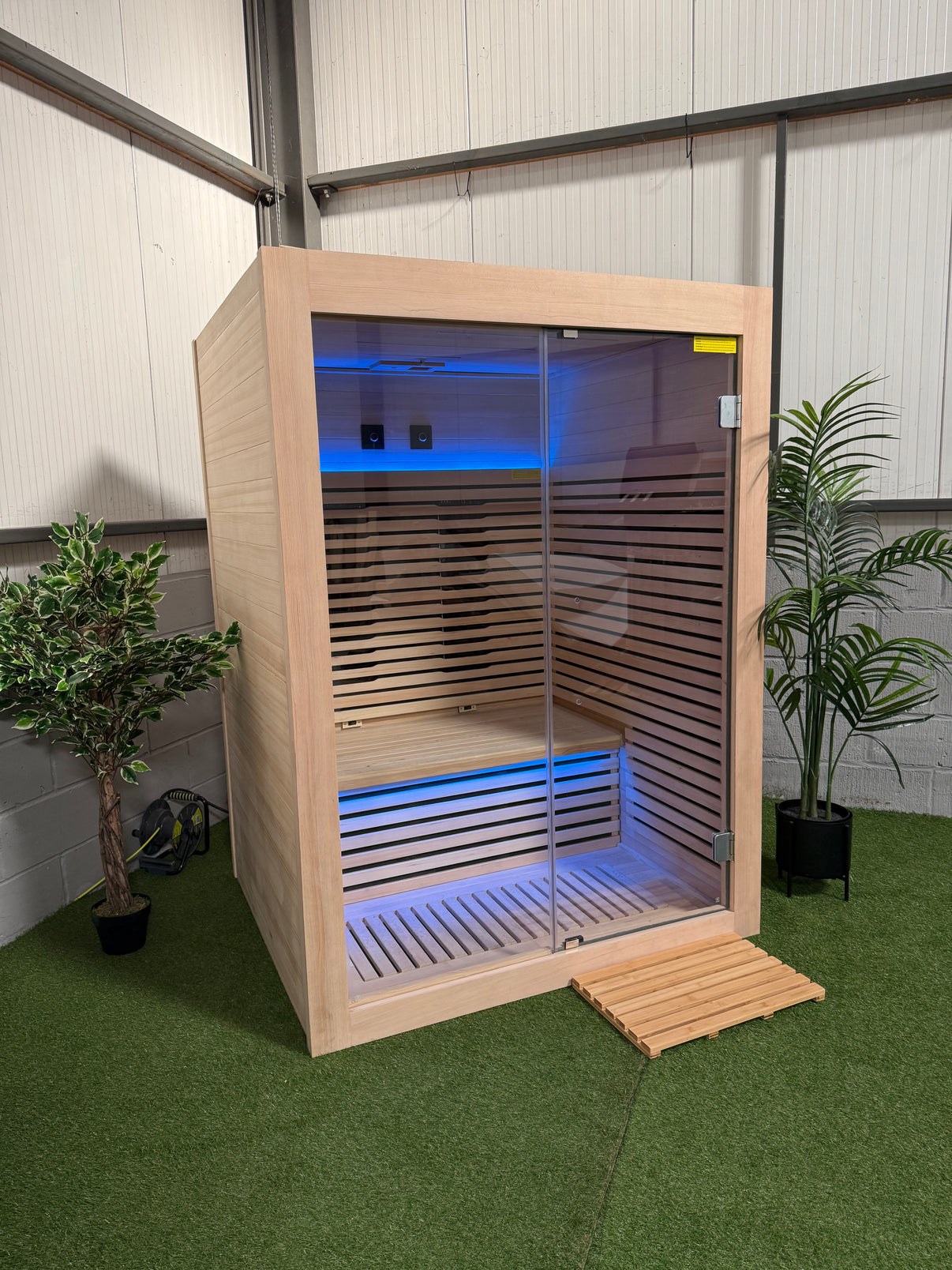 The Lumin Sanctum is the larger of the Lumin range. A spacious, luxurious infrared sauna for up to 6 people. With full-surround heating zones, premium tempered glass design, wide bench seating, and immersive LED lighting, the Sanctum delivers a spa-grade experience without leaving home.